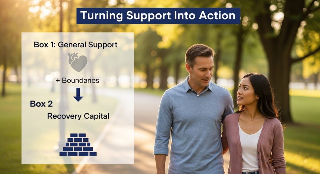 Research shows that recovery capital, which includes these structured supports, is what predicts lower relapse risk, not diffuse social support. Boundaries operationalize support into behaviors that actively protect sobriety.